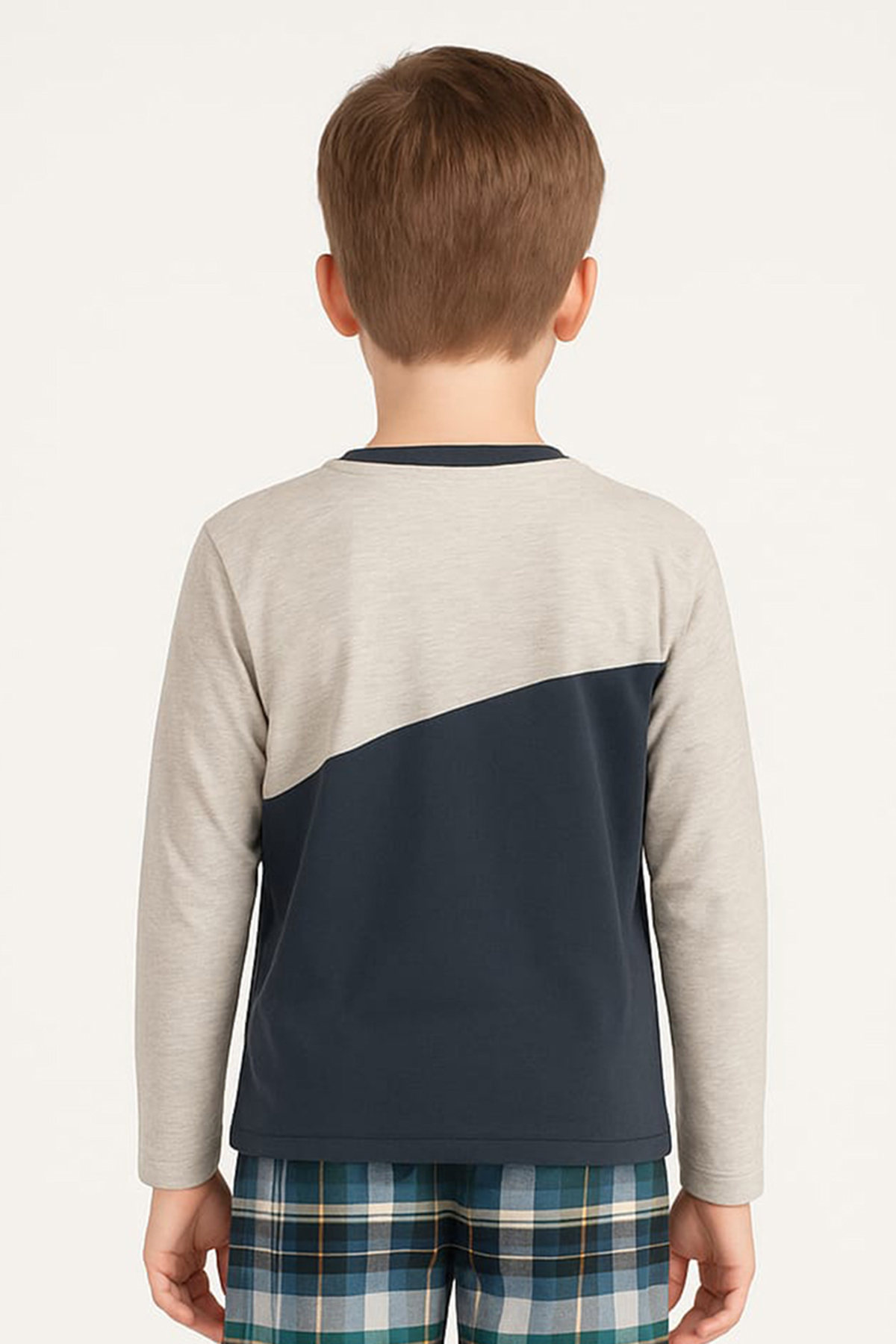 Günlük kullanımda rahatlık sunmak için tasarlanan bu takım, yumuşak dokusu ve esnek yapısıyla çocukların hareket özgürlüğünü destekler. Üst parçanın iki renkli tasarımı sade bir görünüm oluştururken, alt parçanın kareli deseni klasik pijama stiline enerji katar. Uyku sırasında ve ev içi aktivitelerde hafif bir kullanım deneyimi sağlar.
