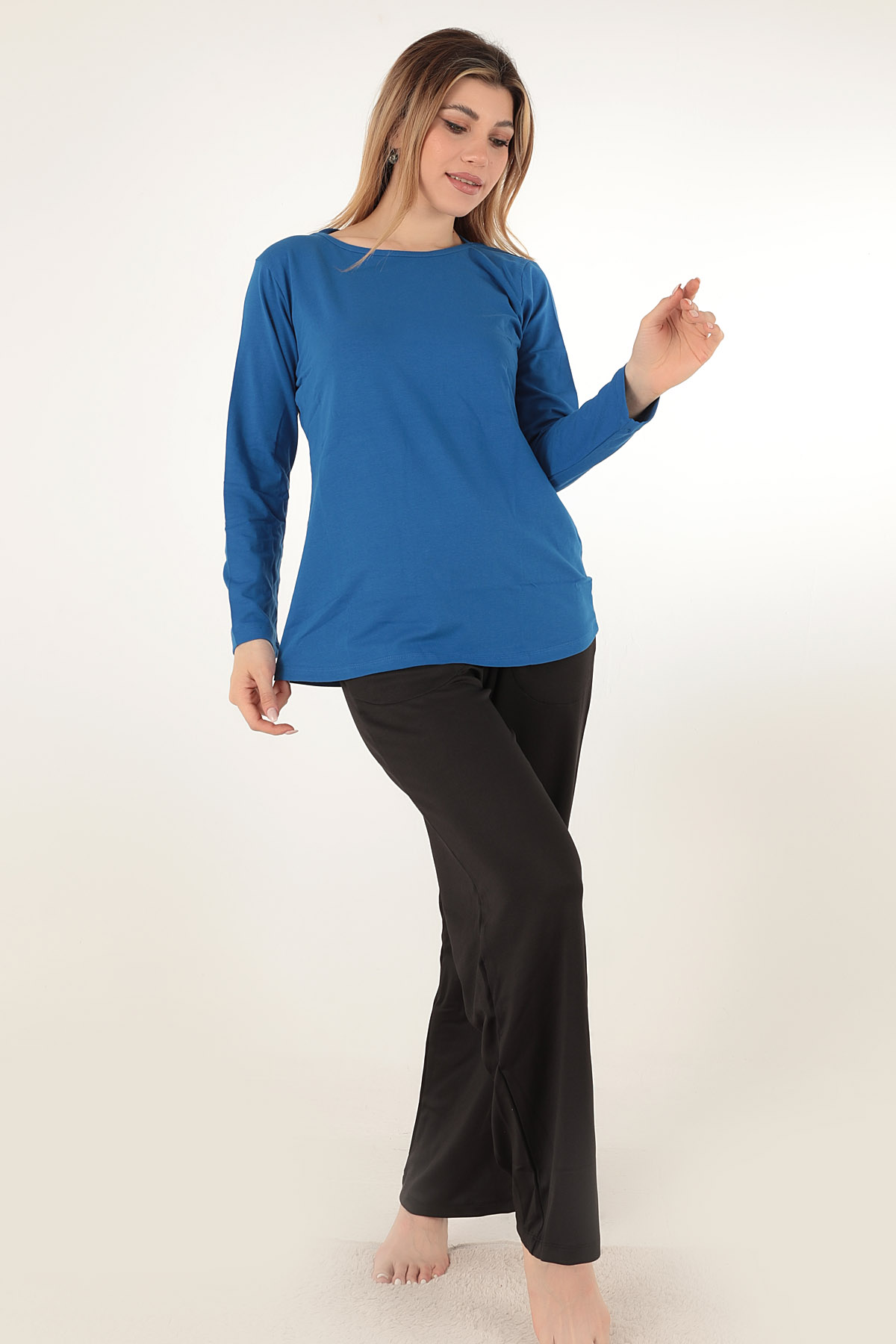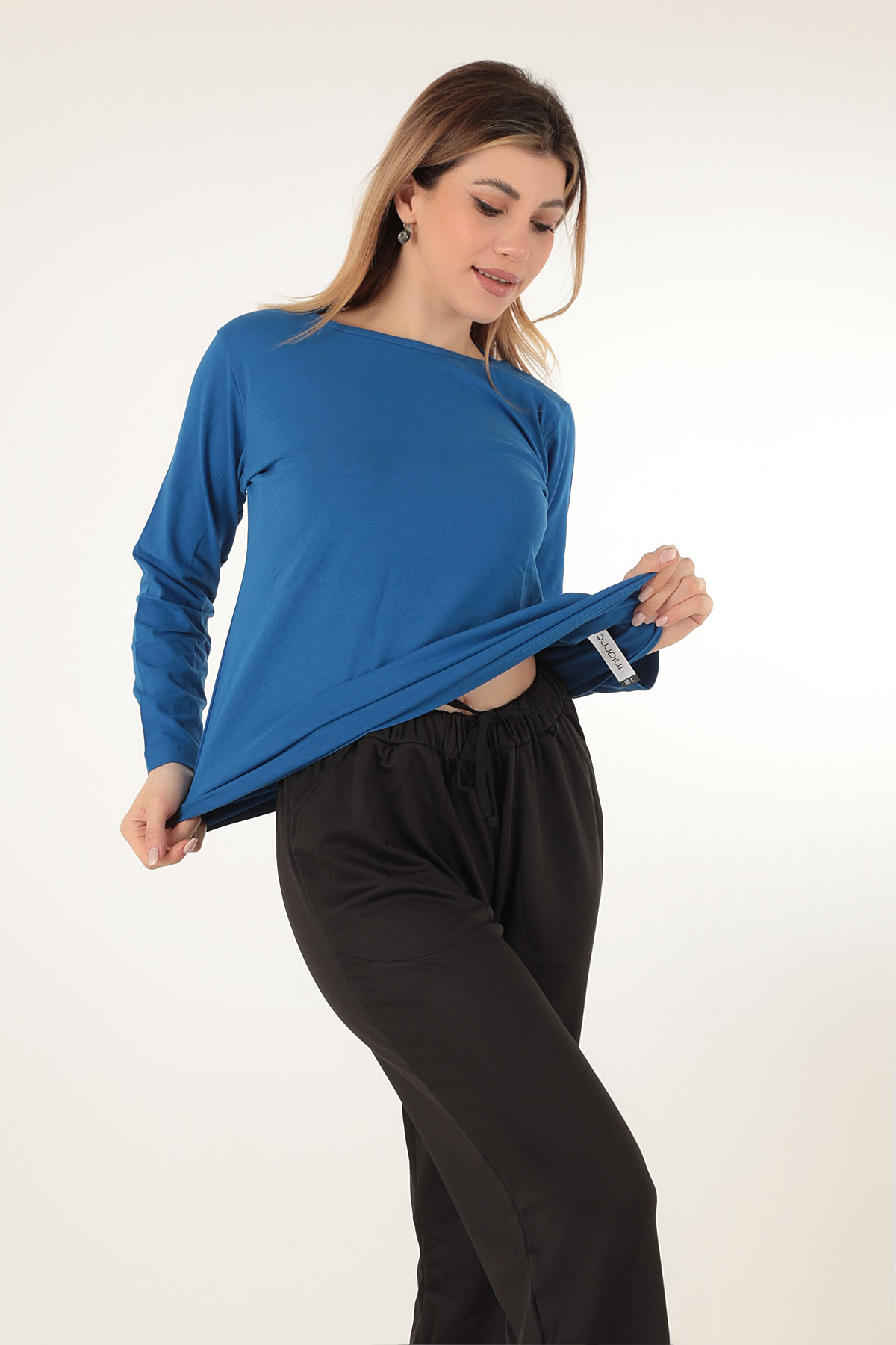 • Üst parça uzun kollu ve yuvarlak yaka kesimine sahiptir.
