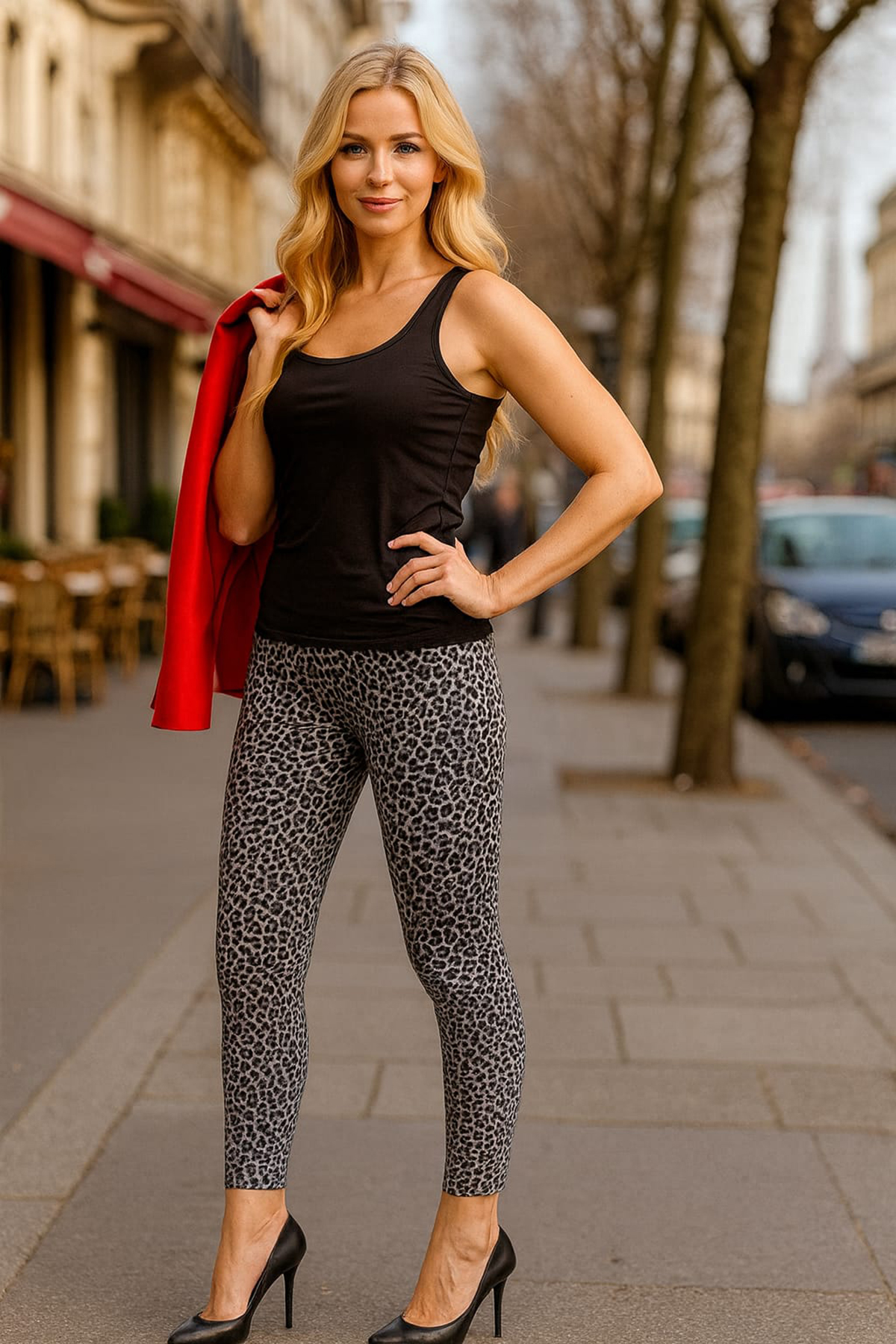 Yoğun desenli yapısı ve esnek formu sayesinde gün boyu hareket özgürlüğü sunan DoReMi Leopar Desenli Tayt, günlük kullanımda ve hafif spor aktivitelerinde konfor arayanlar için pratik bir seçenek oluşturur. Gövdeyi saran yapısı sayesinde kayma veya toplanma yapmadan durur. Desen dokusu belirgin ancak abartısızdı; bu da ürünü hem rahat hem de görsel açıdan dengeli kılar.