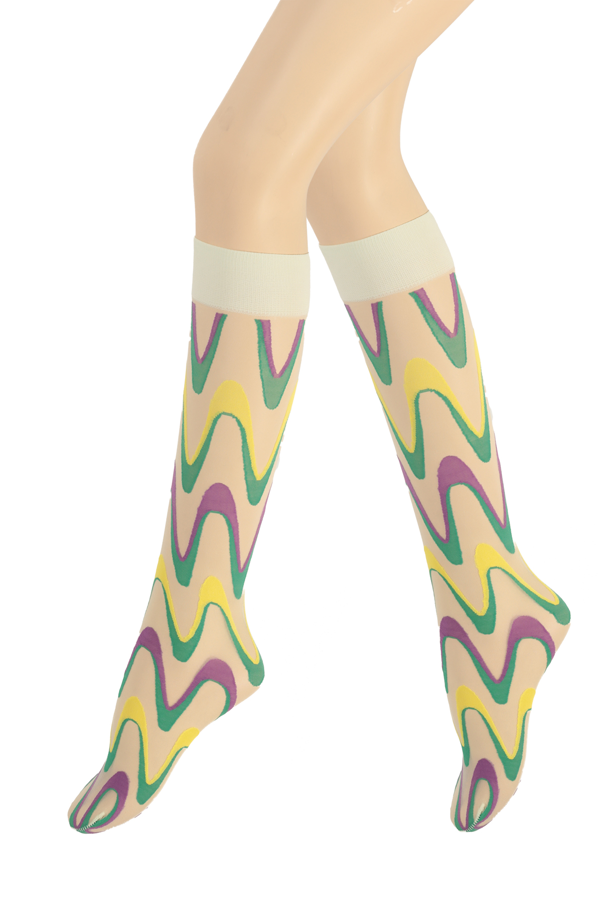 Modern ve enerjik desenlere sahip bu model, günlük kombinlere dinamik bir dokunuş eklemek isteyenler için tasarlanmıştır. Diz altına kadar uzanan formu, hem stil hem de kullanım kolaylığı sağlar. Desen detayları çorabın yüzeyinde belirgin şekilde yer aldığı için görsel açıdan dikkat çeker ve farklı kıyafetlerle uyumlu bir seçenek sunar. Günlük giyimden özel günlere kadar geniş bir kullanım alanına sahiptir ve ince yapısı sayesinde ten üzerinde hafif bir his bırakır.