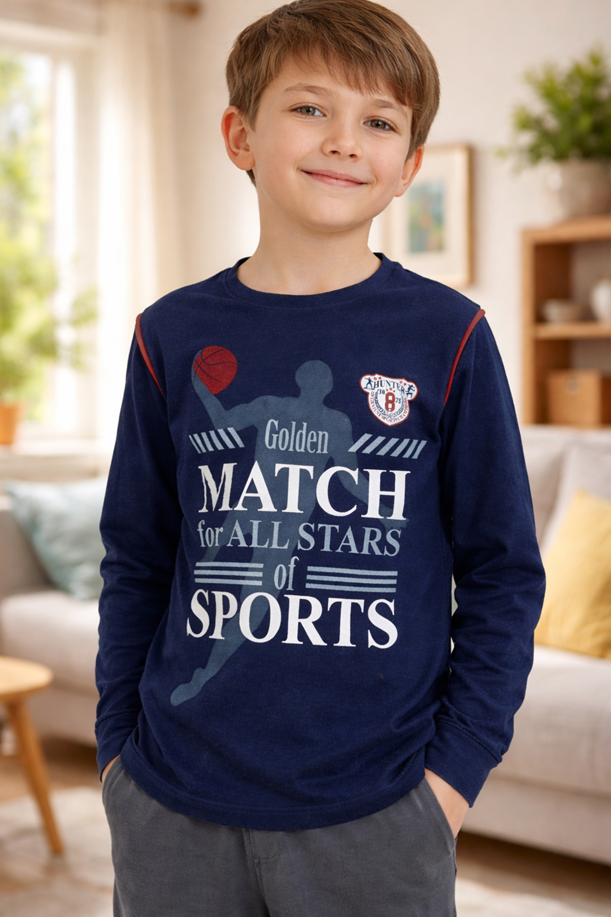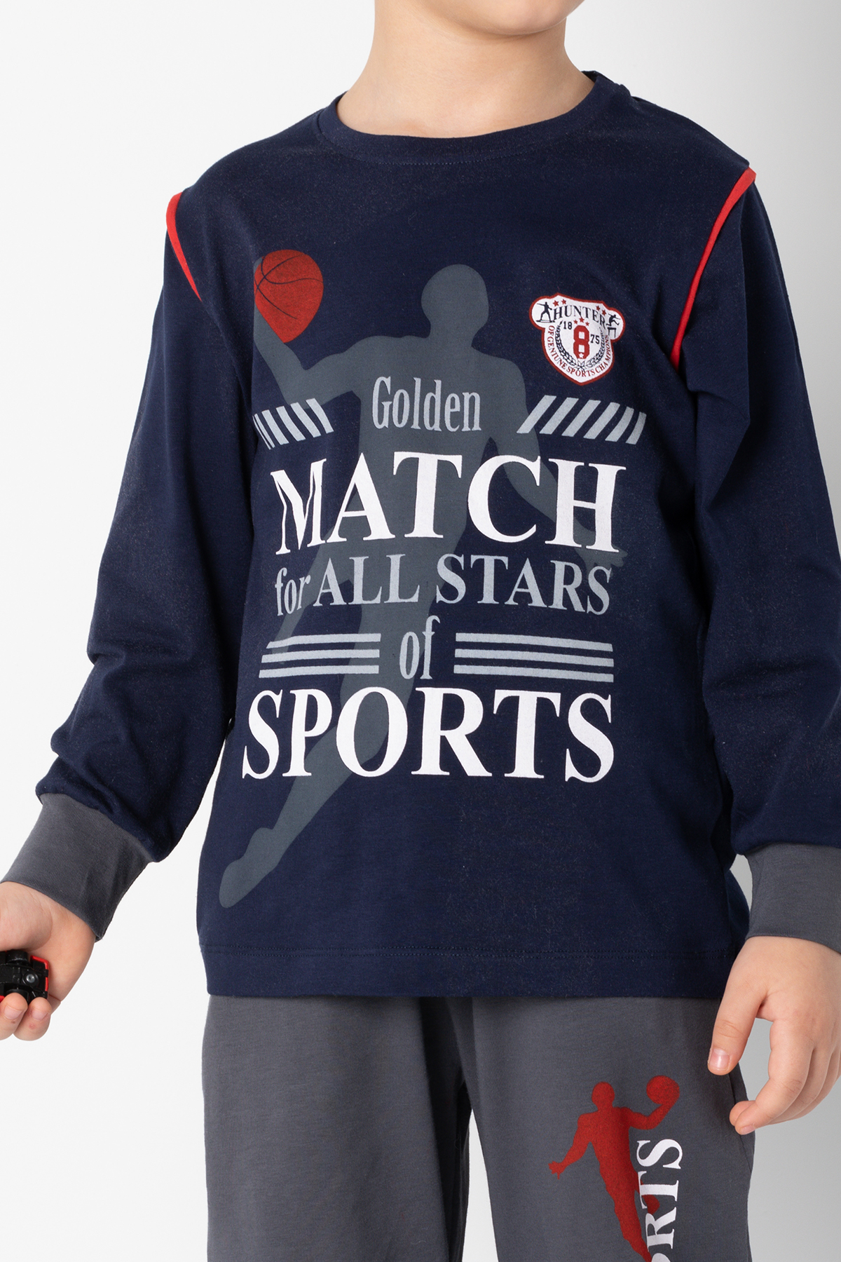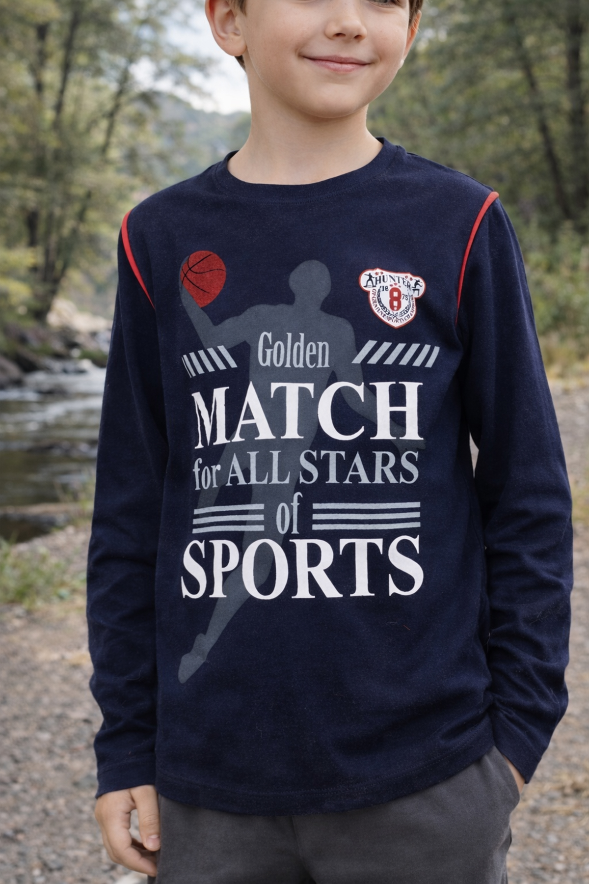 Enerjik tasarımıyla çocukların favorisi olacak DoReMi Çocuk Pijama Üstü, yumuşak kumaşı ve rahat kalıbıyla gece boyu konfor sunar. Spor temalı baskısı dinamizm katar, esnek kumaşı hareket özgürlüğü sağlar. Kol uçlarındaki kontrast manşet detaylarıyla hem sportif hem modern bir görünüm yaratır.