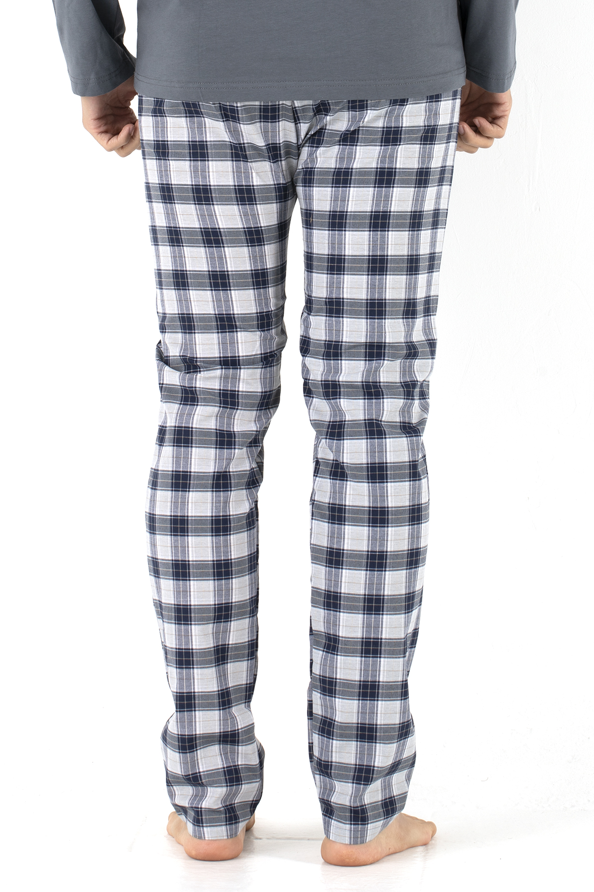Günlük ev rahatlığına uygun bu pijama altı, hafif dokusu ve esnek yapısıyla hareket özgürlüğü sağlar. Bel kısmındaki yumuşak lastik uzun süreli kullanımda konfor sunar. Dokusu nefes alabilir özelliktedir, uyku sırasında terletmeyi azaltmaya yardımcı olur. Kareli desen klasik bir görünüm sağlar.
