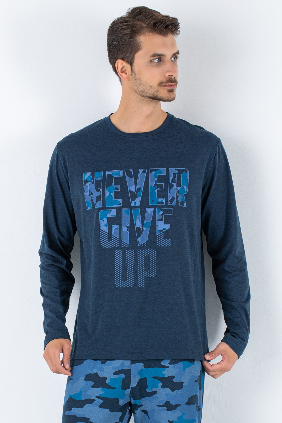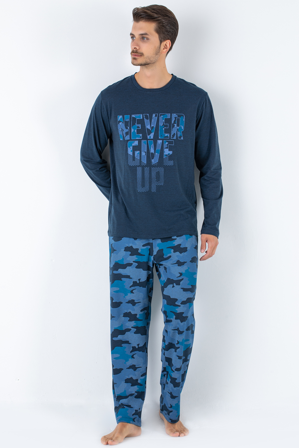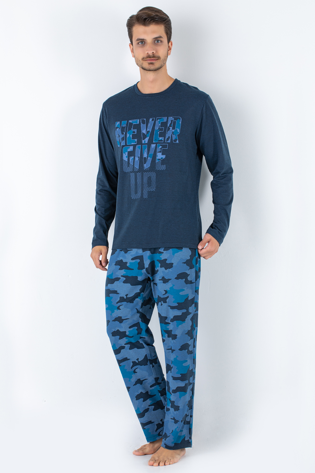 Üst pijamasının özel baskısı, alt pijamasının deseni ile stil evinizde de yanınızda olacak.
