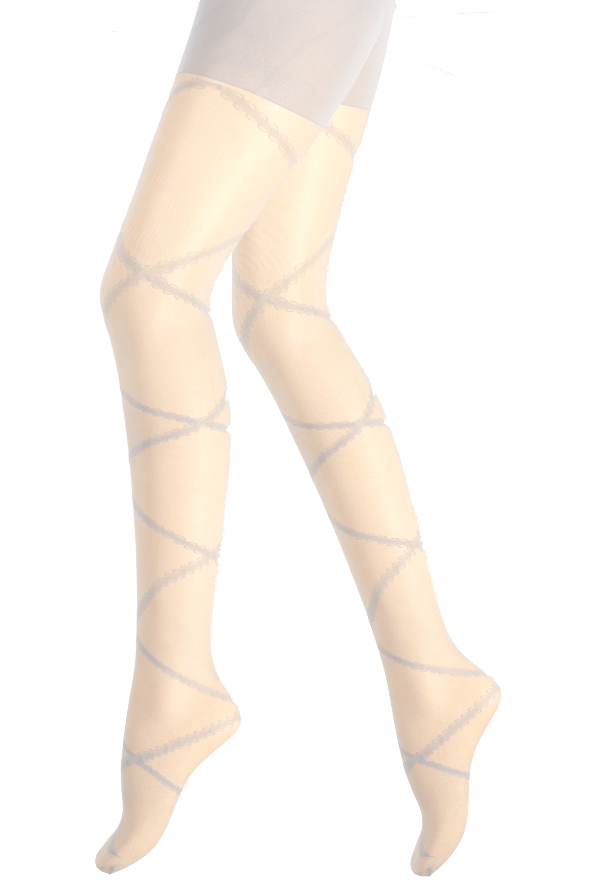 Zarif görünümü öne çıkaran bu külotlu çorap, bacak üzerinde çapraz şekilde ilerleyen dekoratif şerit tasarımıyla daha feminen ve dikkat çekici bir etki sunar. İnce yapısı sayesinde tenle doğal bir uyum yakalar, özel gün kombinlerinden günlük şıklığa kadar geniş bir kullanım alanı sağlar. Esnek formu hareket konforunu artırırken, bel kısmındaki yumuşak bandı gün boyu stabil kullanım sağlar. Hafif parlak dokusuyla elbise, etek ve topuklu ayakkabı kombinlerinde bacağı daha pürüzsüz gösteren bir son dokunuş görevi görür.
