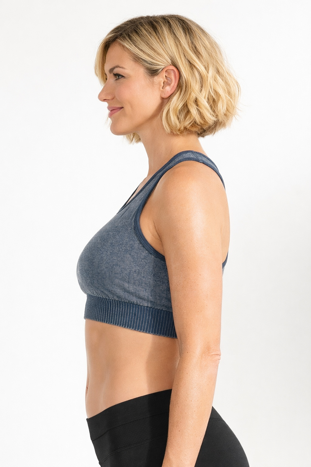 Dikişsiz teknolojisiyle üretilen bu büstiyer esnek yapısıyla vücuda tam uyum sağlar ve gün boyu konfor sunar. Modern fitilli dokusu spor kombinlere enerjik bir stil katarken, hafif kumaşı sayesinde hareket özgürlüğü sağlar.