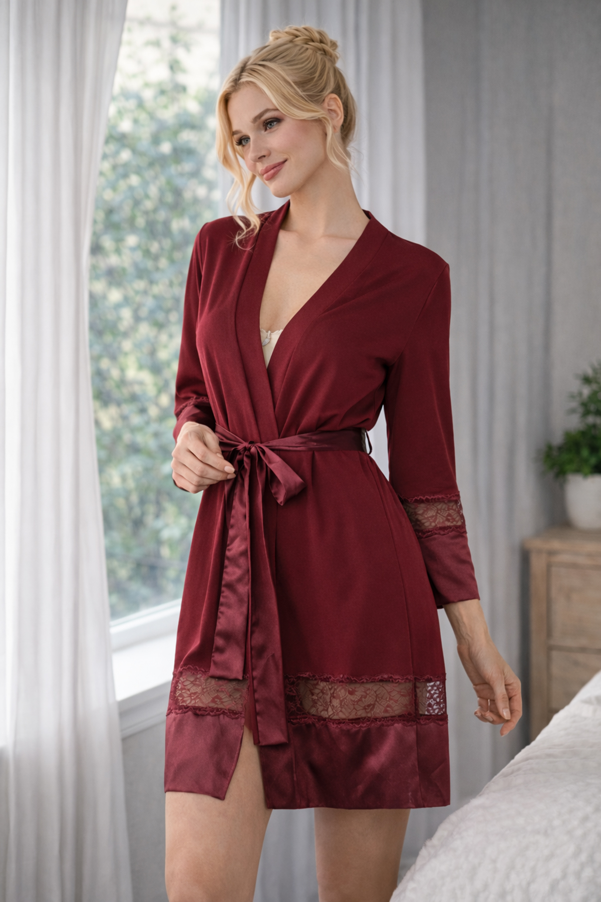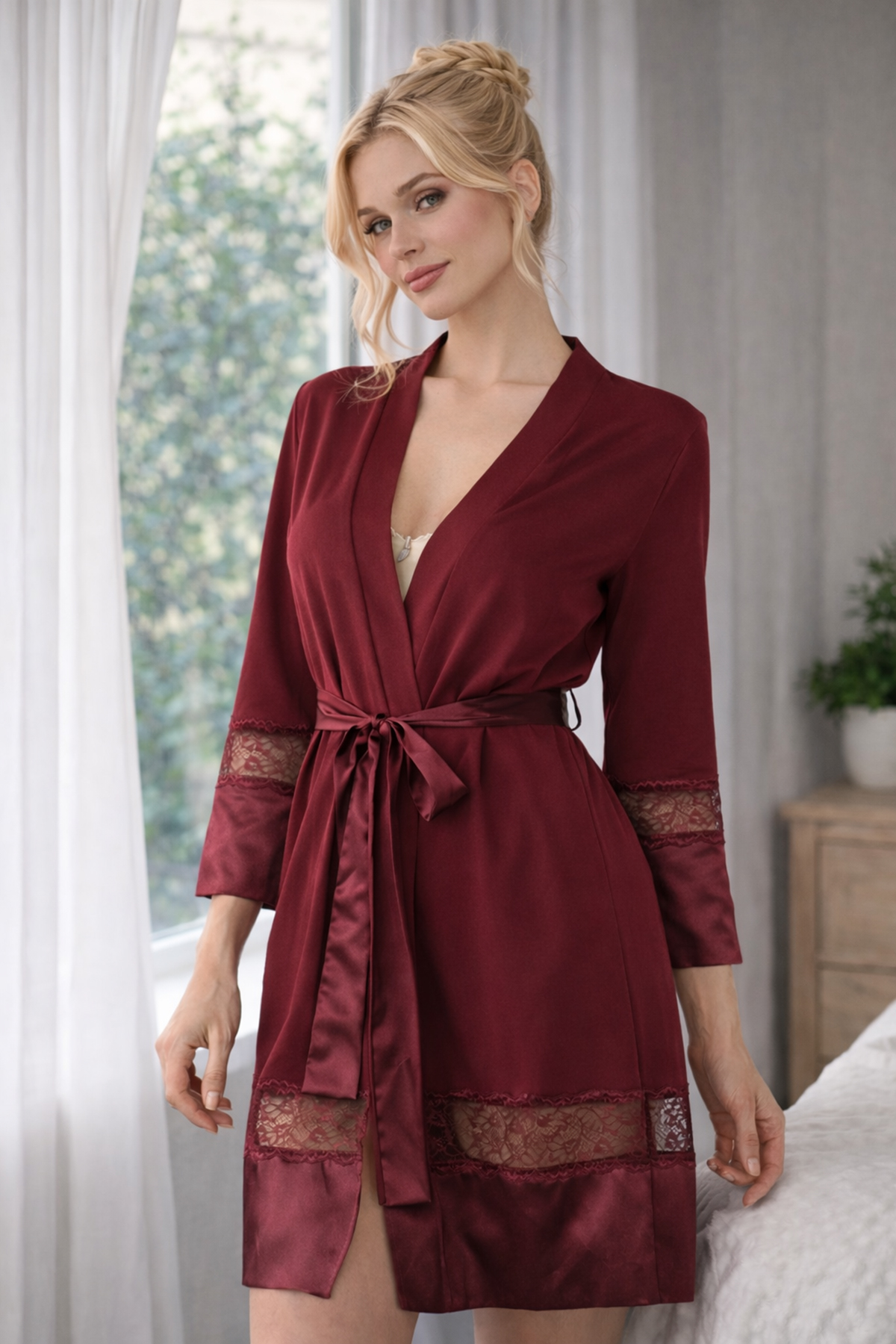 Miorre Dantelli Penye Sabahlık bordonun gizemiyle dantelin şıklığı bi r arada...