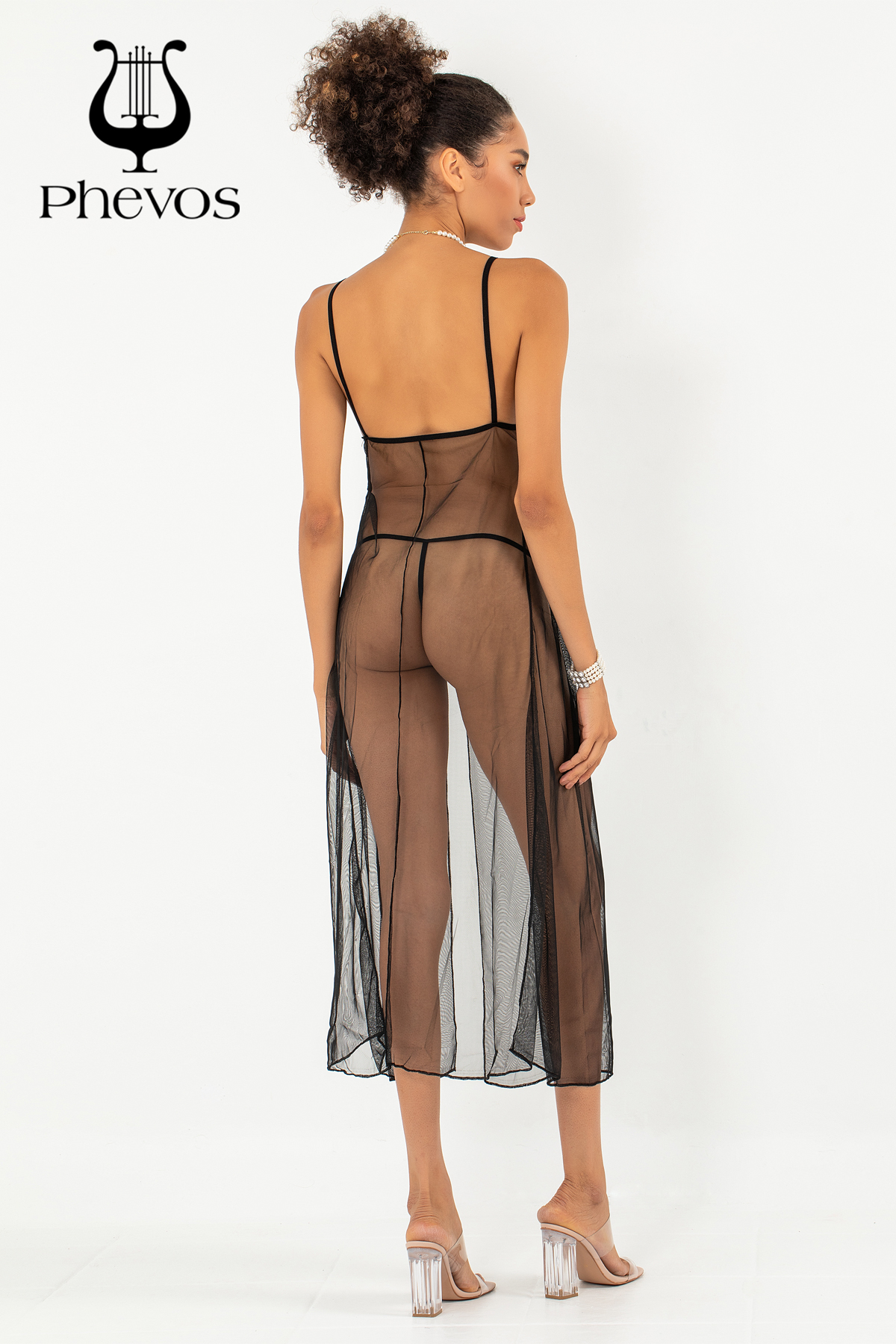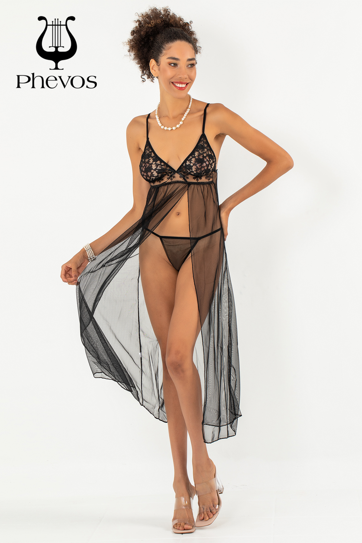 Göğüsleri tamamen saran dantelin çekiciliği ve ayak bileklerinize kadar uzanan tülün dökümlü duruşuyla harika bir takım...