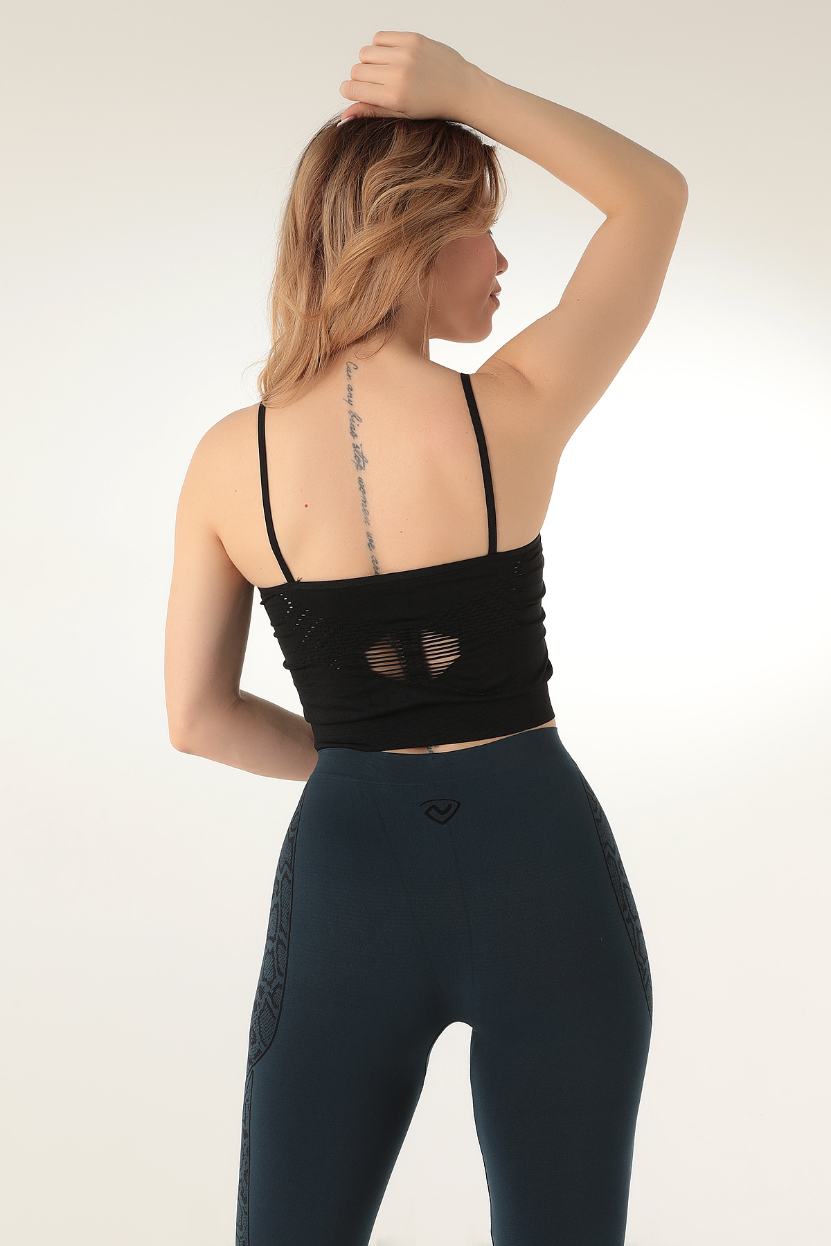 Geometrik file örgü detayları ve dikişsiz (seamless) tasarımıyla hem şık bir görünüm hem de üstün rahatlık sunar. İnce askılı yapısı, soft kalıbı ve esnek kumaşıyla vücuda tam oturur; yoga, pilates veya yürüyüş gibi hafif spor aktivitelerinde özgürce hareket etmenize olanak sağlar