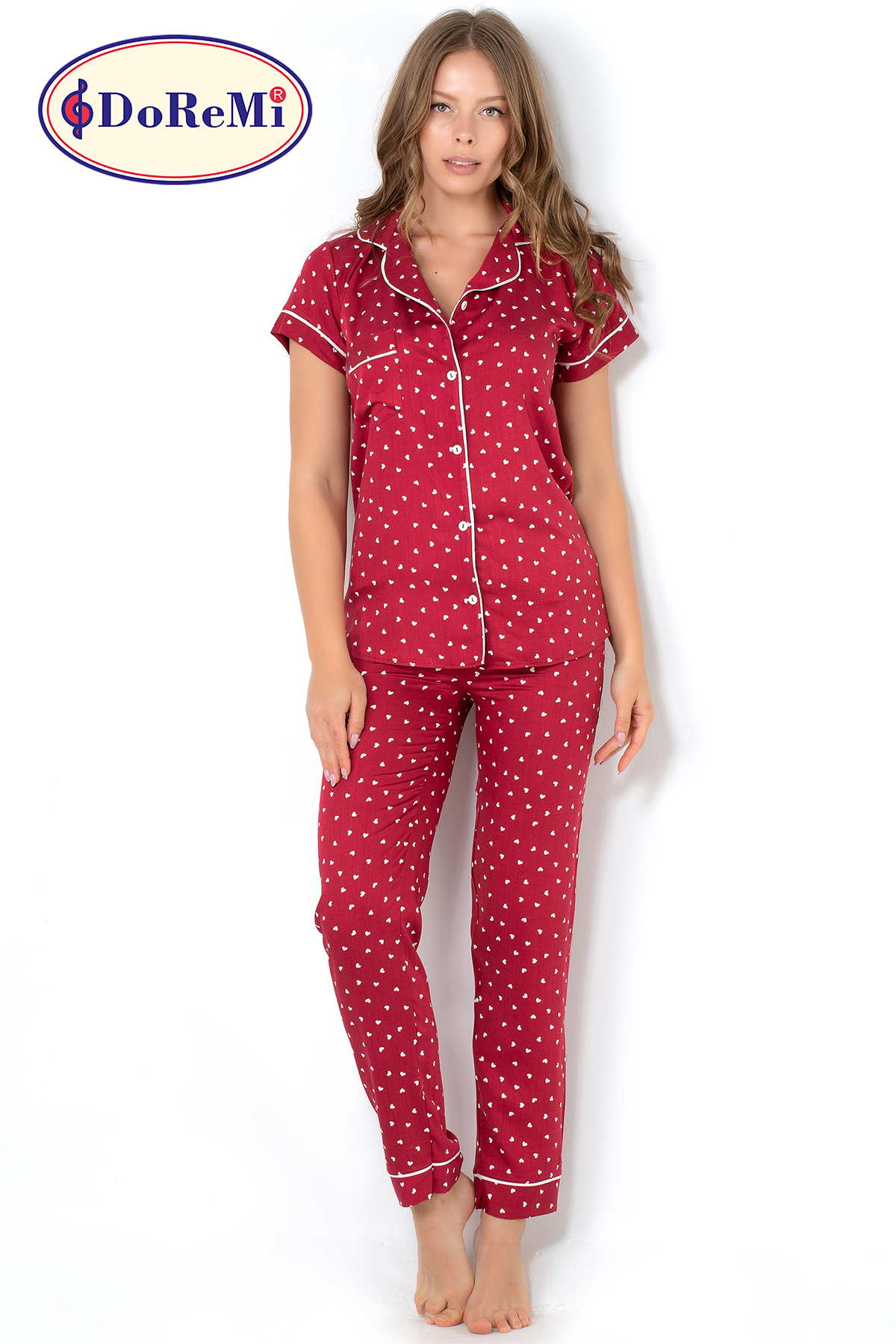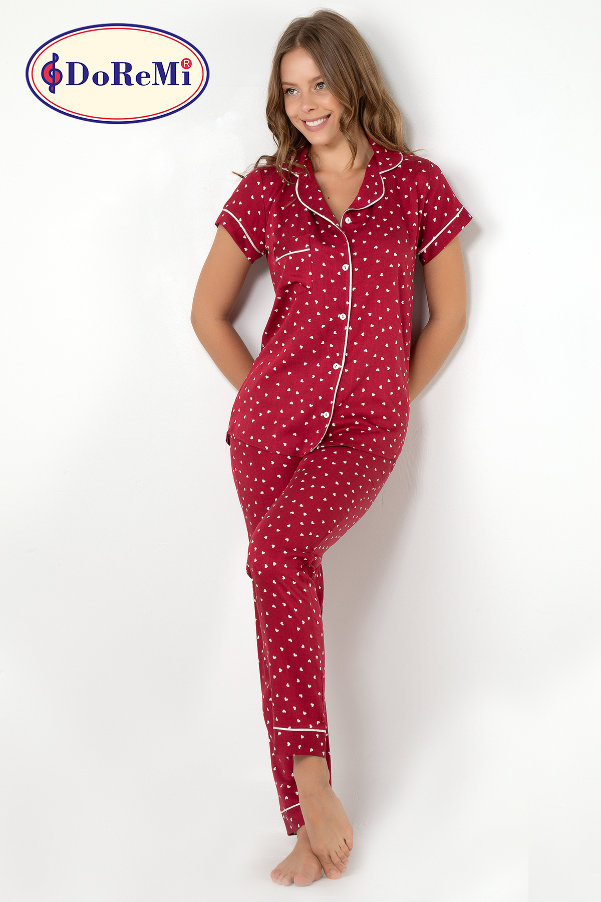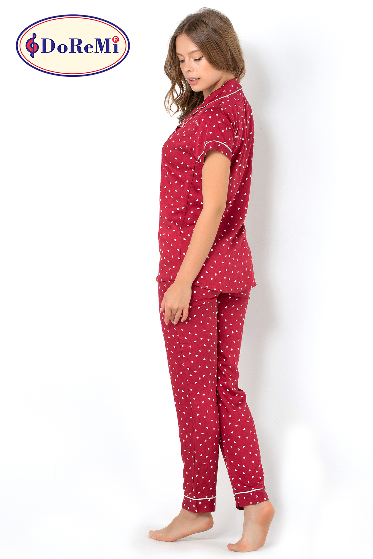 DoReMi Burgundy Heart Kısa Kollu Pijama Takımı