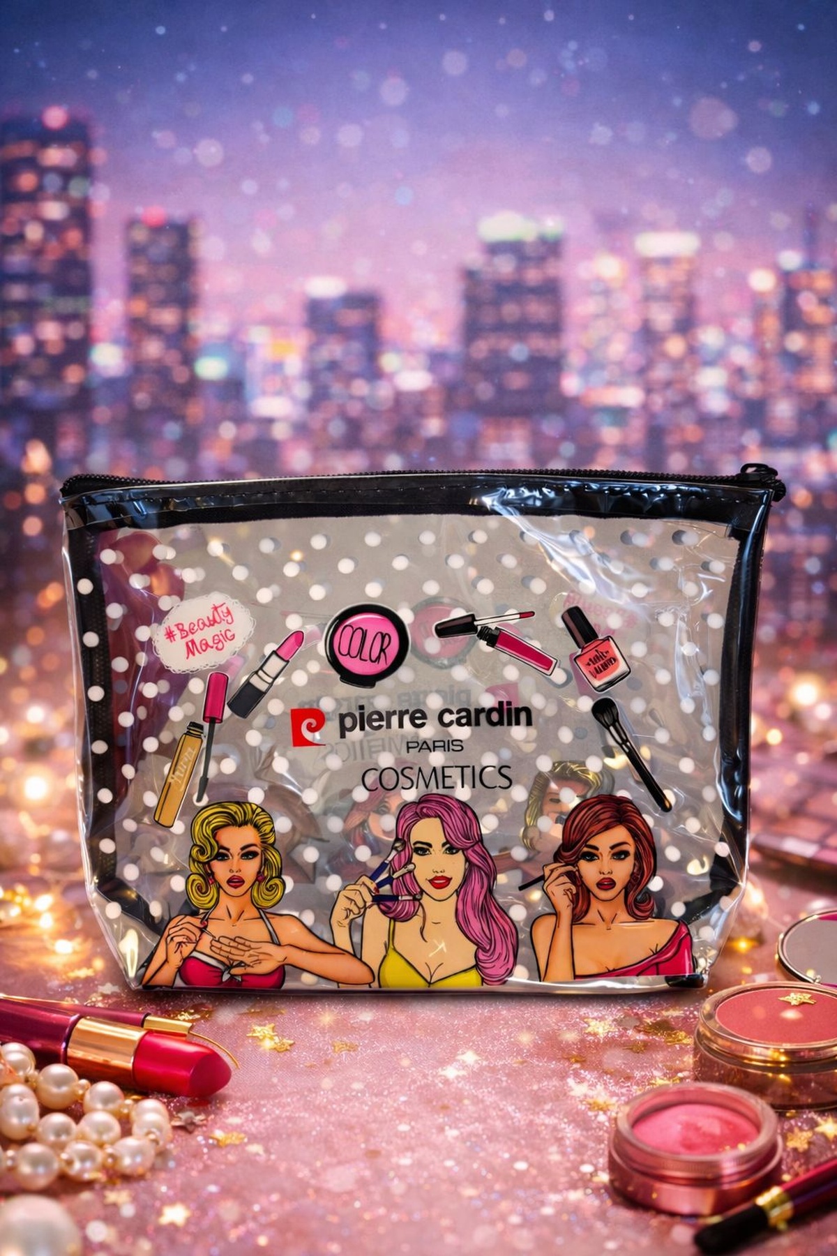 Pierre Cardin Cosmetics Iconic Beauty Şeffaf Makyaj Çantası, stil sahibi kadınların günlük makyaj rutinlerine eşlik etmek üzere tasarlandı. Şeffaf yapısı sayesinde içeriği kolayca görülebilir, pratik ve düzenli kullanım sağlar. Renkli ve ikonlaşmış kadın illüstrasyonlarıyla dikkat çeken tasarımı, makyaj çantanı sadece bir aksesuar değil aynı zamanda stilinin bir parçası haline getirir. Dayanıklı plastik materyali sayesinde uzun süreli kullanım sunar. Günlük kullanım, seyahat, çanta içi düzenleme veya hediye alternatifi olarak idealdir.