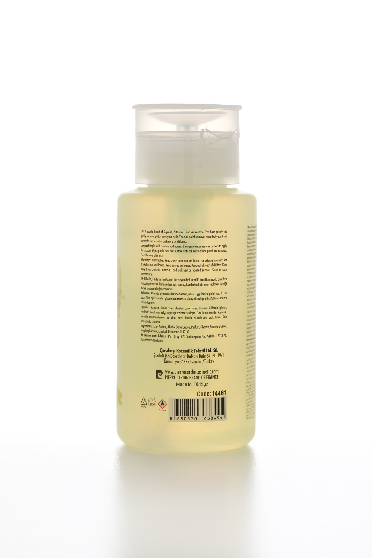 Kullanım: Pamuğu pompanın üstüne bastırın, ürünü uygulamak için bir veya iki kez basın. Tüm oje kalıntıları çıkana kadar tırnak yüzeyini nazikçe silin. Kullanım sonrası kapağı kapatın.